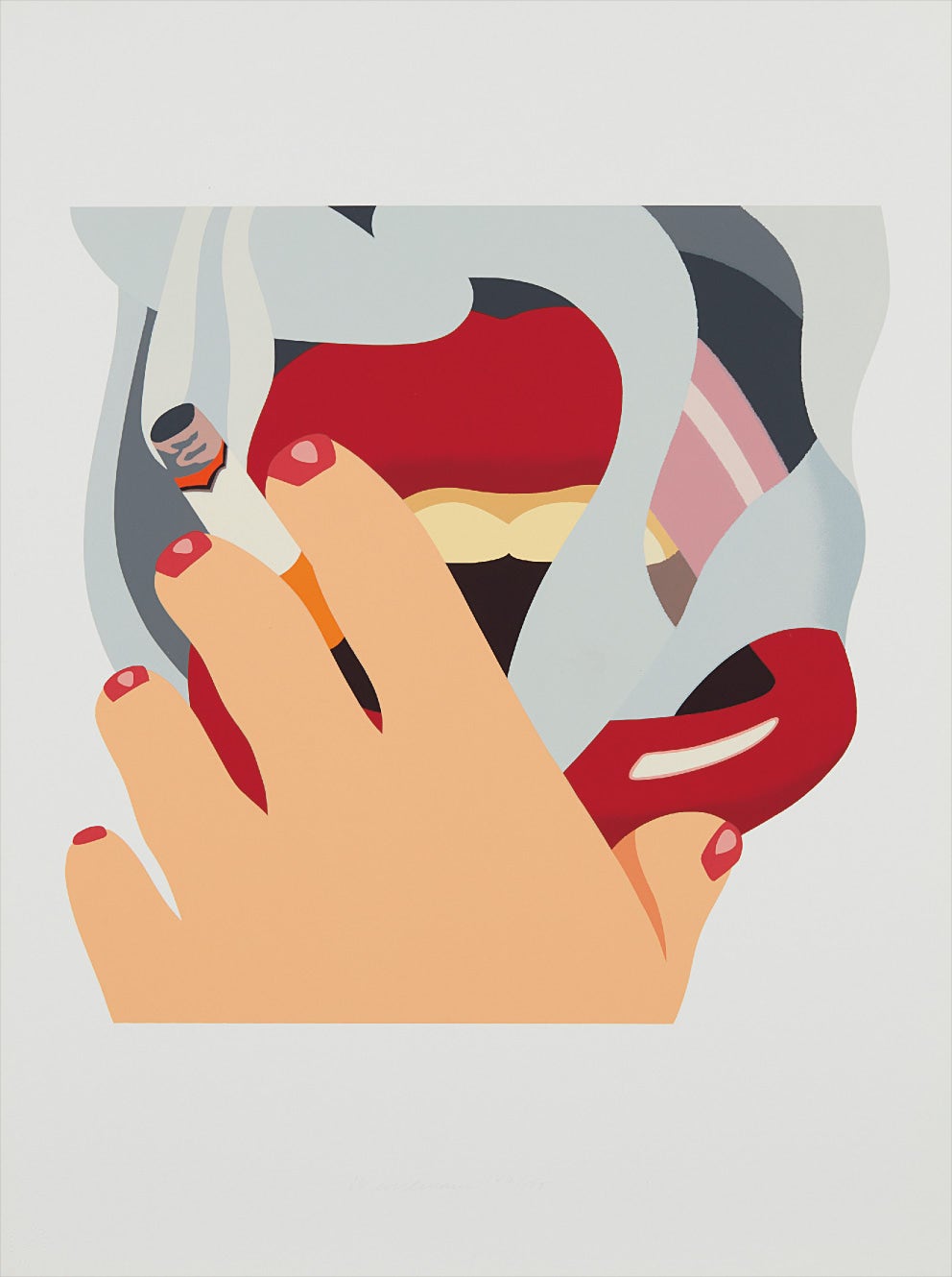 Wesselmann considered pop culture objects as exclusively visual elements and incorporated them in his works as pure containers of bold color. This color palette became the foundation for his now-iconic suggestive figurative canvases, often depicting reclining nudes or women's lips balancing a cigarette.