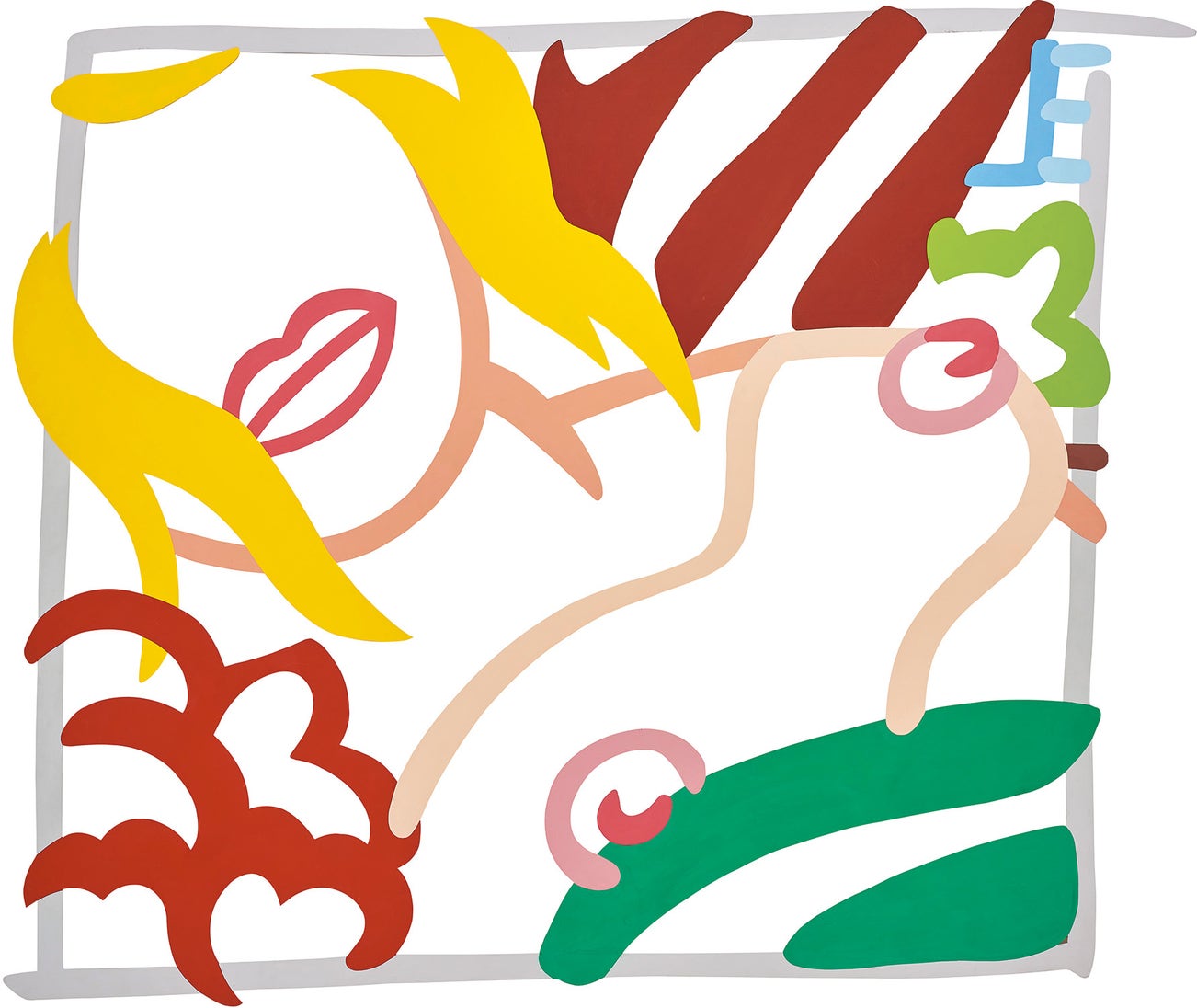 Wesselmann considered pop culture objects as exclusively visual elements and incorporated them in his works as pure containers of bold color. This color palette became the foundation for his now-iconic suggestive figurative canvases, often depicting reclining nudes or women's lips balancing a cigarette.