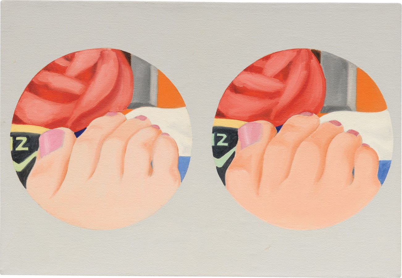 Wesselmann considered pop culture objects as exclusively visual elements and incorporated them in his works as pure containers of bold color. This color palette became the foundation for his now-iconic suggestive figurative canvases, often depicting reclining nudes or women's lips balancing a cigarette.