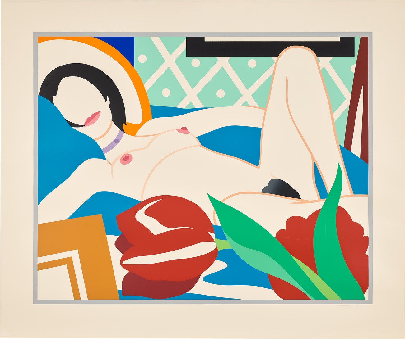 Wesselmann considered pop culture objects as exclusively visual elements and incorporated them in his works as pure containers of bold color. This color palette became the foundation for his now-iconic suggestive figurative canvases, often depicting reclining nudes or women's lips balancing a cigarette.