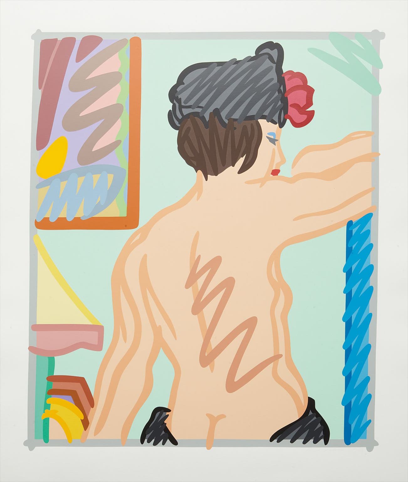 Wesselmann considered pop culture objects as exclusively visual elements and incorporated them in his works as pure containers of bold color. This color palette became the foundation for his now-iconic suggestive figurative canvases, often depicting reclining nudes or women's lips balancing a cigarette.