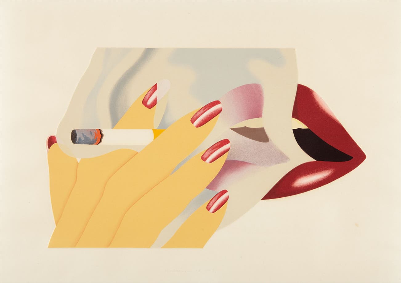 Wesselmann considered pop culture objects as exclusively visual elements and incorporated them in his works as pure containers of bold color. This color palette became the foundation for his now-iconic suggestive figurative canvases, often depicting reclining nudes or women's lips balancing a cigarette.