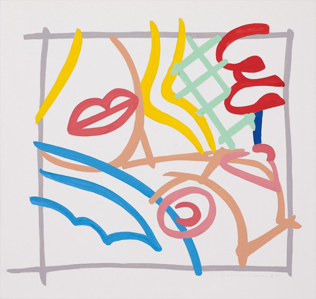 Wesselmann considered pop culture objects as exclusively visual elements and incorporated them in his works as pure containers of bold color. This color palette became the foundation for his now-iconic suggestive figurative canvases, often depicting reclining nudes or women's lips balancing a cigarette.