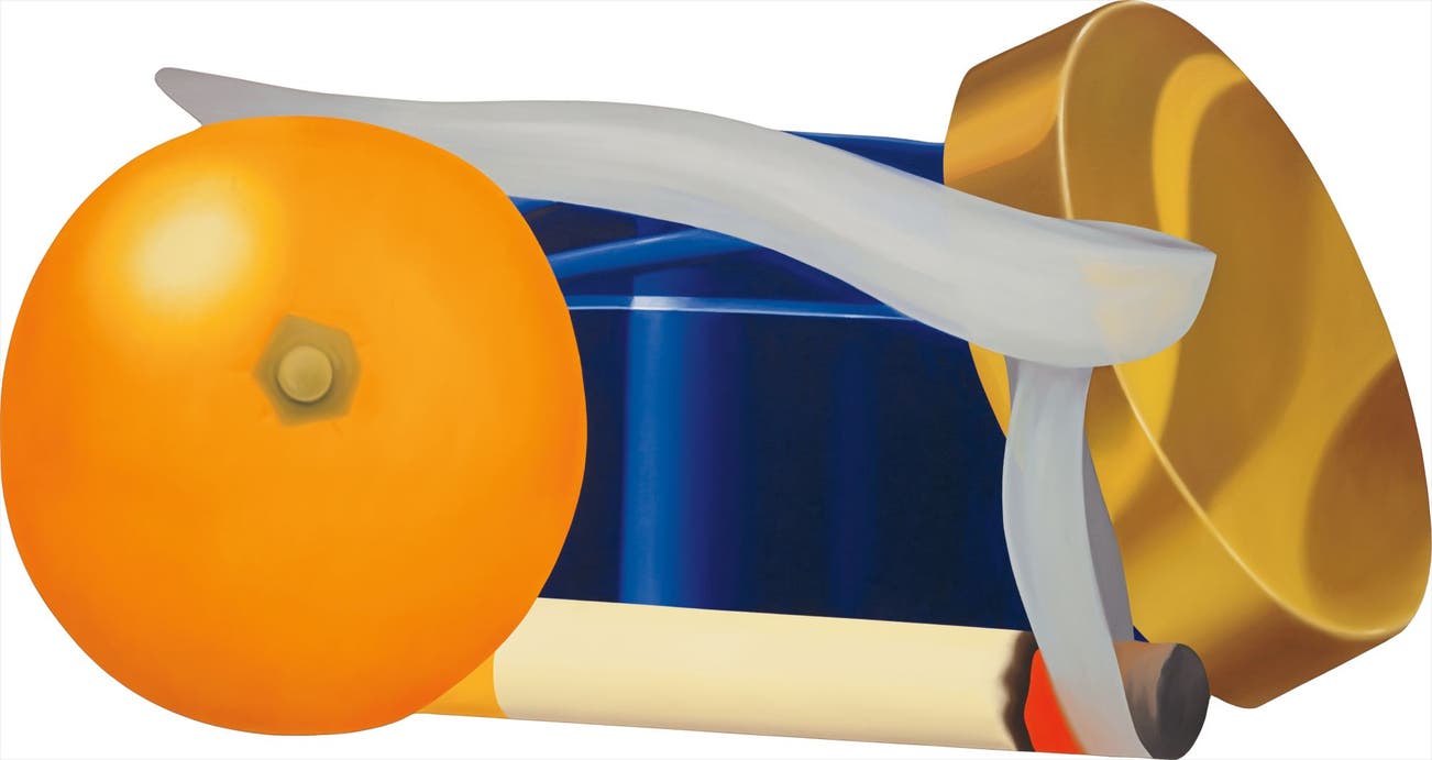 A master of harmonization, Wesselmann’s vibrantly balanced arrangements expertly blends traditional influences with a commercial aesthetic that relay an underlying hint of sexuality and wit. Through a combination of sleekly curved canvases and slick flat surfaces that emphasize a tongue-in-cheek interpretation of his works, it is hard to ignore the brazen promiscuity of his images. For example in the present lot, the lush curves of the orange, its darkened navel pointed directly to the viewer is highly suggestive of a woman’s breast, while the burning cigarette suggest a sensual post coital routine shared between lovers. Traditionally, still life’s are laden with allusions, and Wesselmann’s are no different, however his are not derived from a deeper meaning associated with the object, but through the interaction of the objects and their form, as the artist explains: “At first glance, my pictures seem well behaved, as if – that is a still life, O.K. But these things have such crazy give-and-take that I feel they get really very wild”.