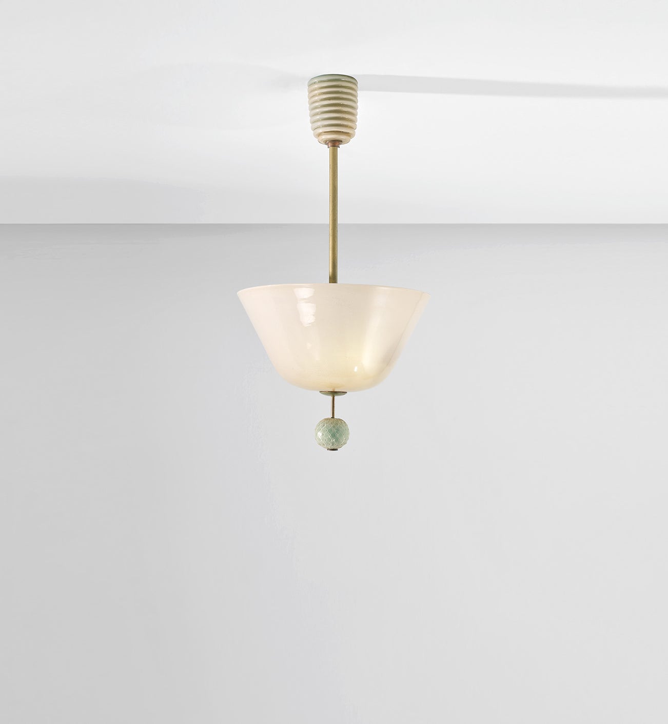 Lattimo glass with applied gold leaf, brass.