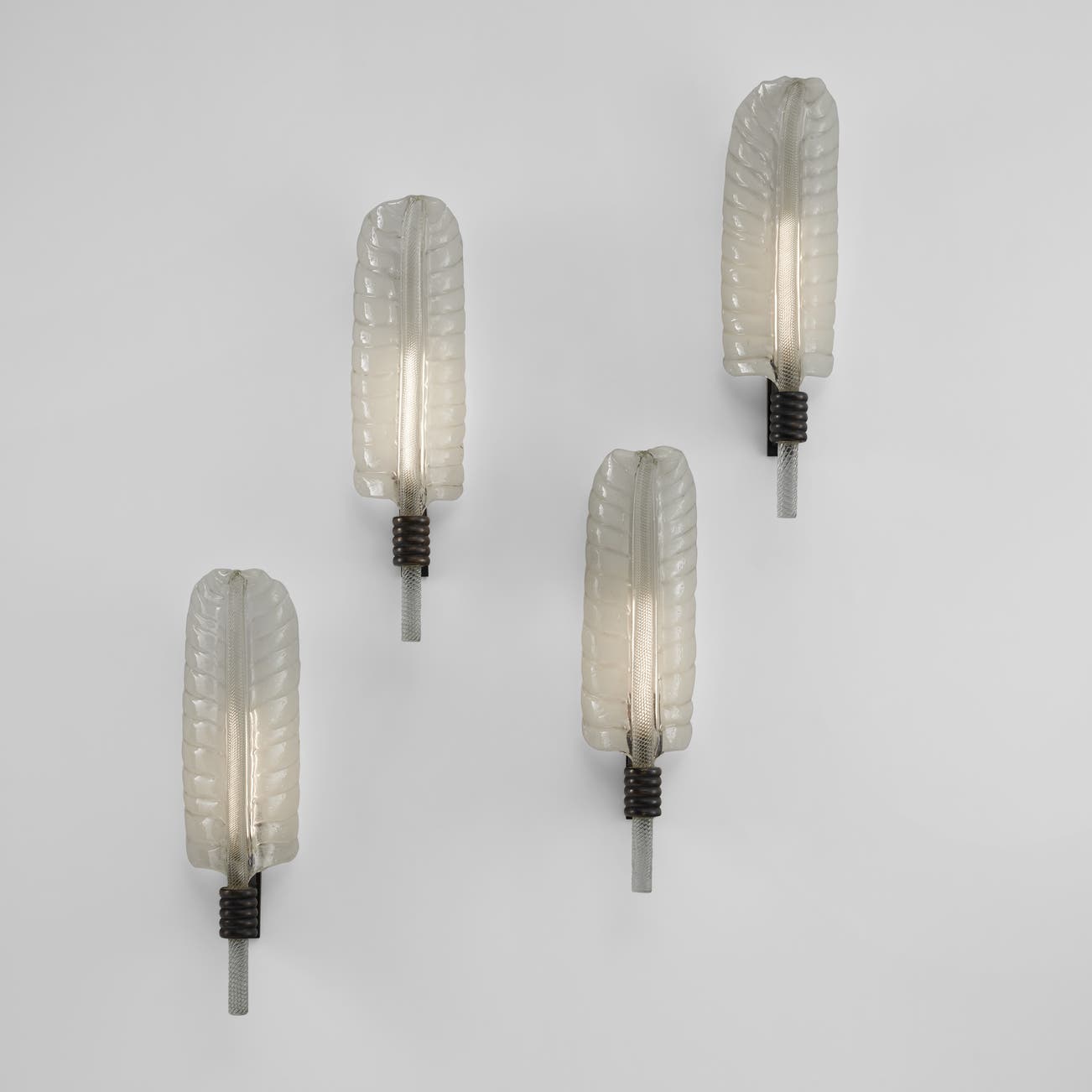 Set of four large "Feather" wall lights, model no. 413