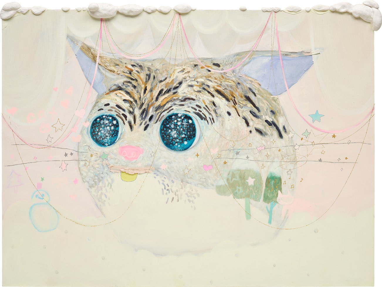 signed and titled 'snow kitten Tomoko Nagai' on the stretcher