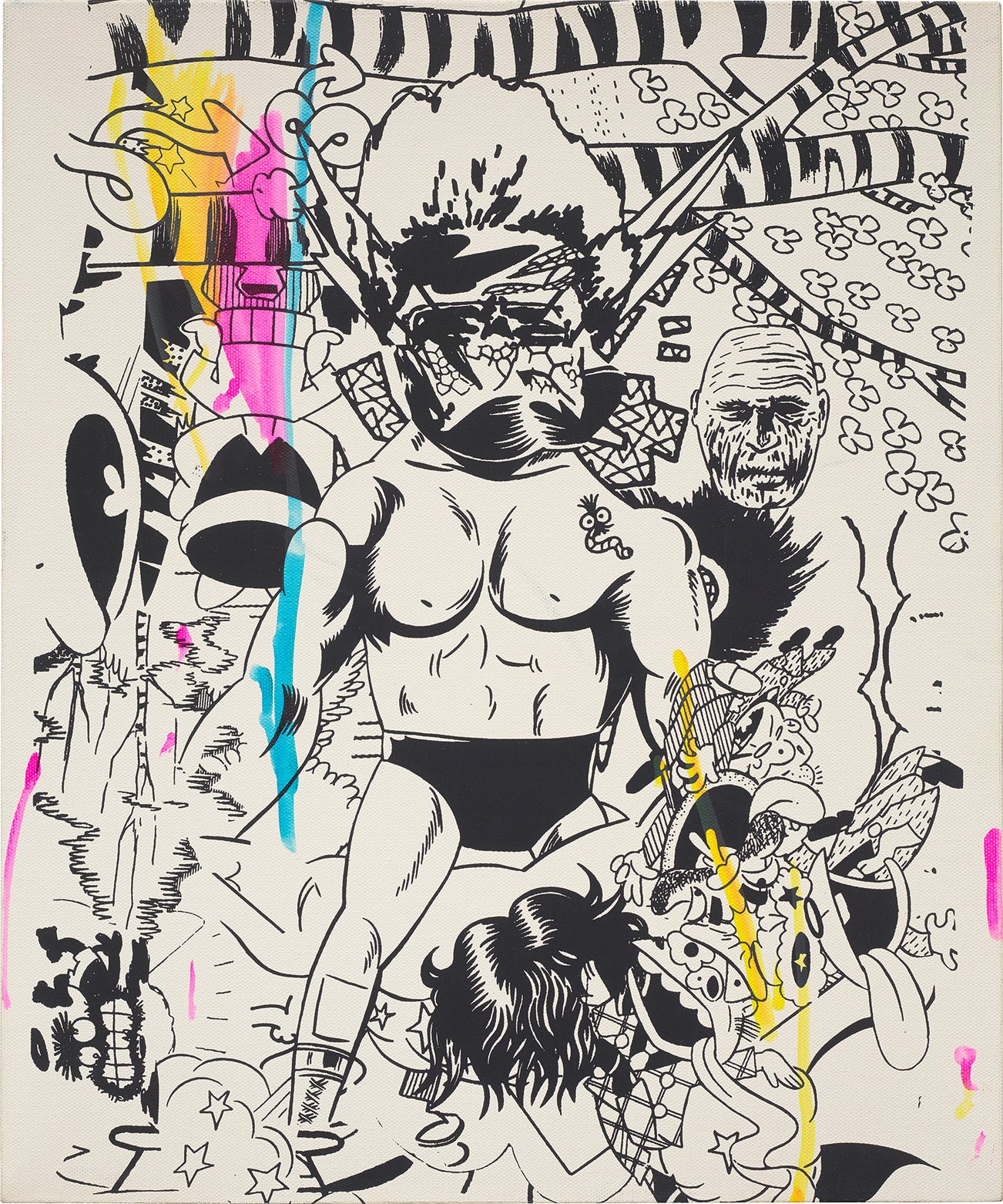 silkscreen and hand colour on canvas