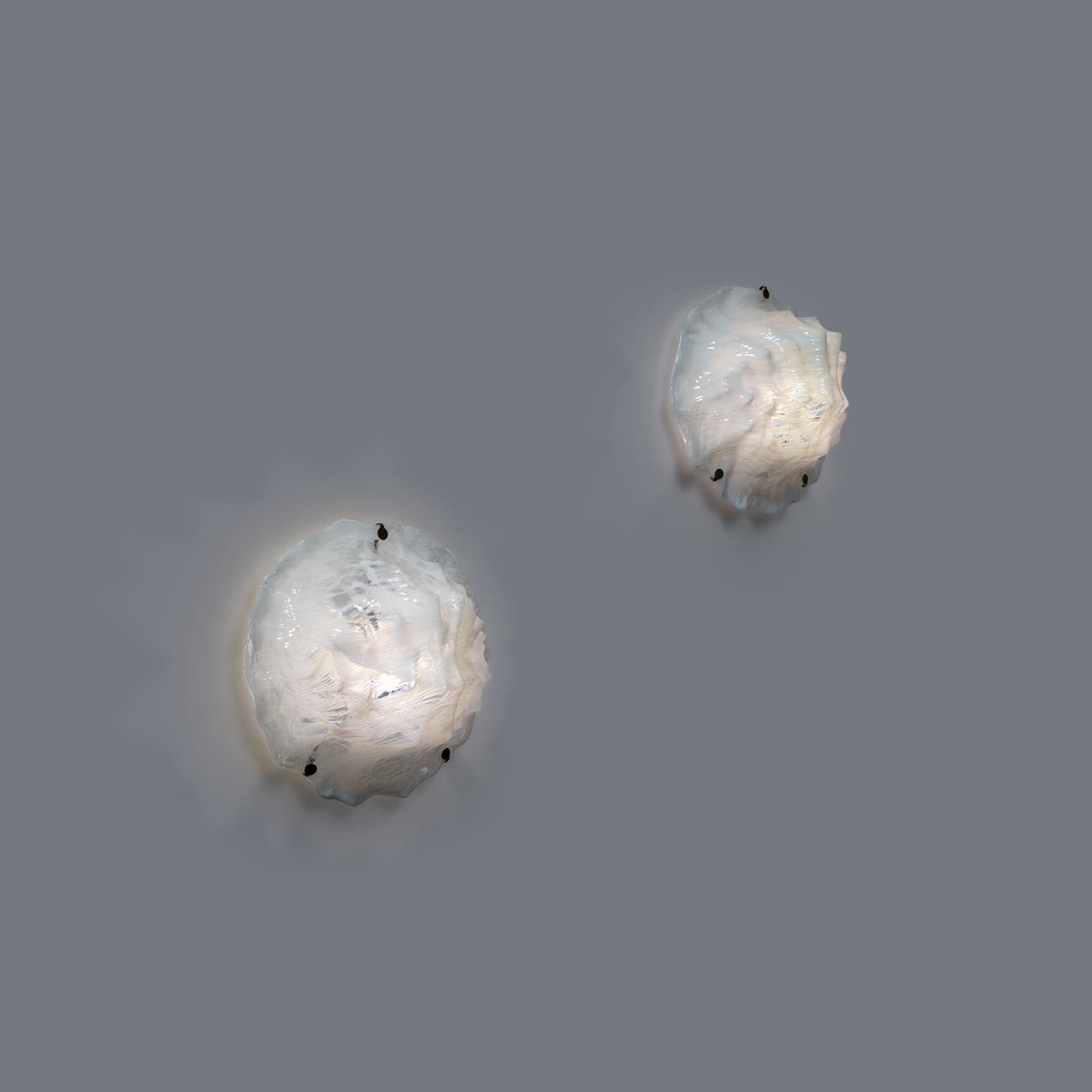 Stracciato lattimo a rilievi glass, chrome-plated metal.