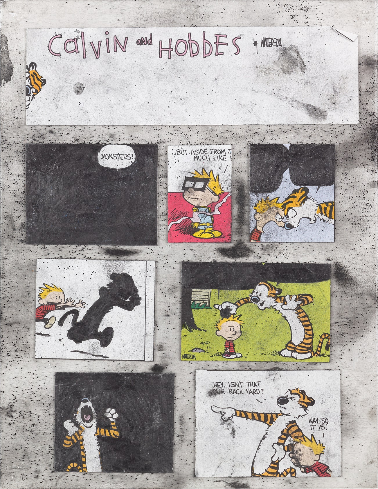 pencil and paper collage on acetate, double-sided