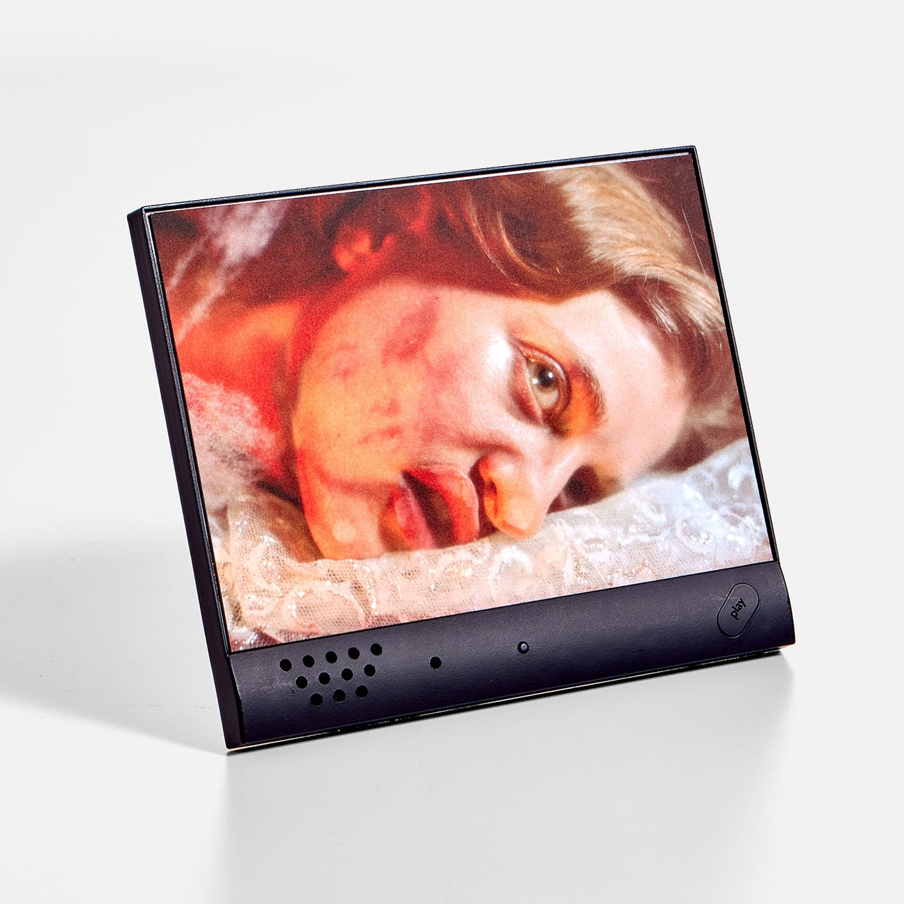 Color photograph mounted in plastic frame with 10 second recording (not in working order).
