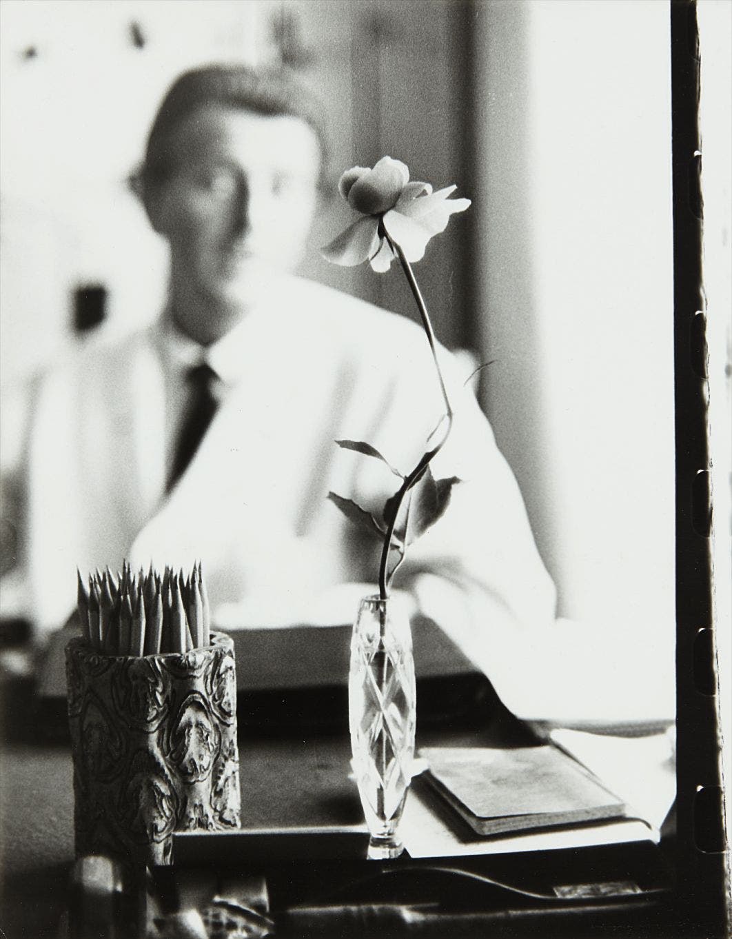 Michelantonio Celestino Onofrio Vaccaro, better known as Tony Vaccaro, learned to photograph during WWII, after which he became a renowned lifestyle photographer for magazines such as Flair, Look and Life. When Vaccaro took this portrait for Look, Hubert de Givenchy had become world famous for his design of the little black dress that was worn by Audrey Hepburn in the opening scene of Blake Edwards' 1961 romantic comedy, Breakfast at Tiffany's. Here, Vacarro shows Givenchy as the man behind the famous dress, with the designer focused on the simple line and form of the flower in the foreground, as if gaining inspiration for future collections.