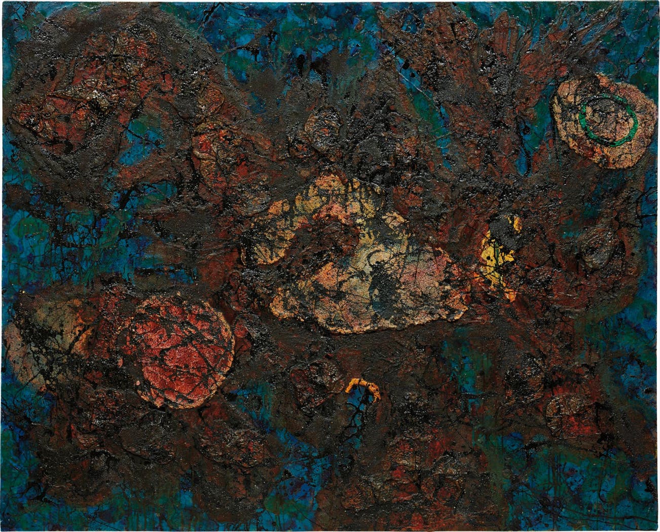 The genius of Imai’s work is his groundbreaking embrace of Art Informal and renegade denial of the dominant conventions of 1950s Japanese art. Imai’s forceful style of unbounded, yet evocative, gesture, paint application, and use of mixed media is well represented in Chimère / 幻想 (Fantasy) [GENSOU], a tour de force painting that is unequivocally characteristic of Imai's finest mature works.