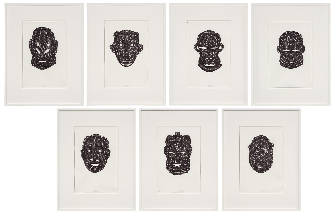 signed, respectively inscribed and dated "Toyin Odutola 2010 [1-7]/7" on the reverse
