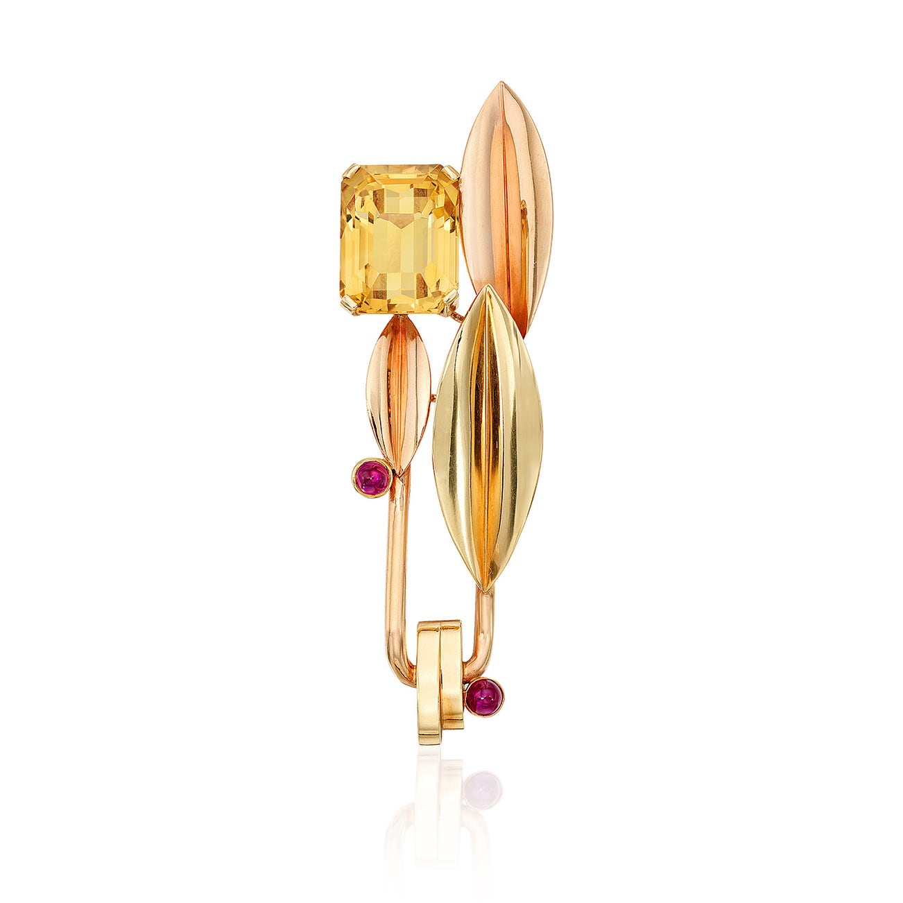 A Citrine, Ruby, and Bi-Colored Gold Brooch