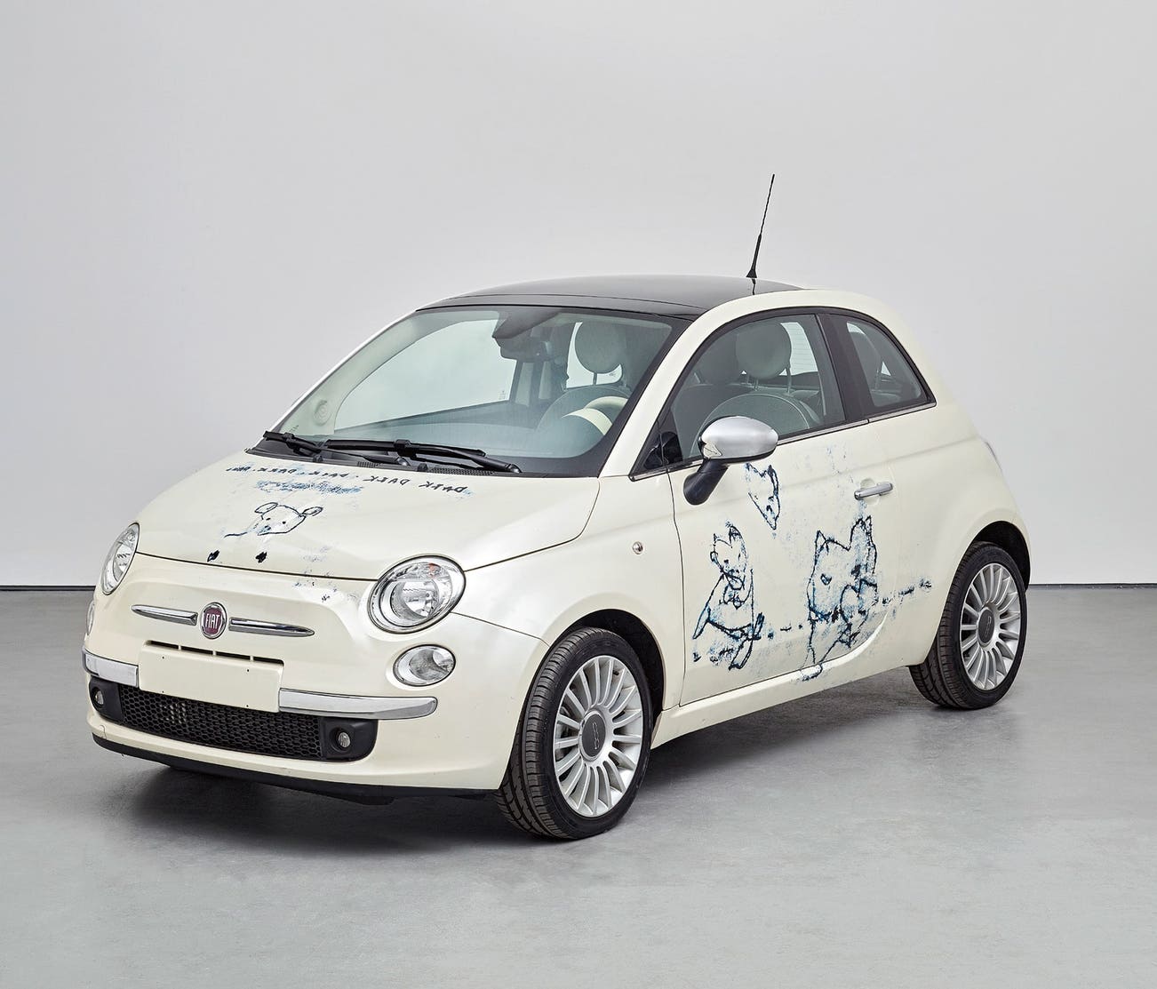 vinyl artwork applied to an un-registered Fiat 500