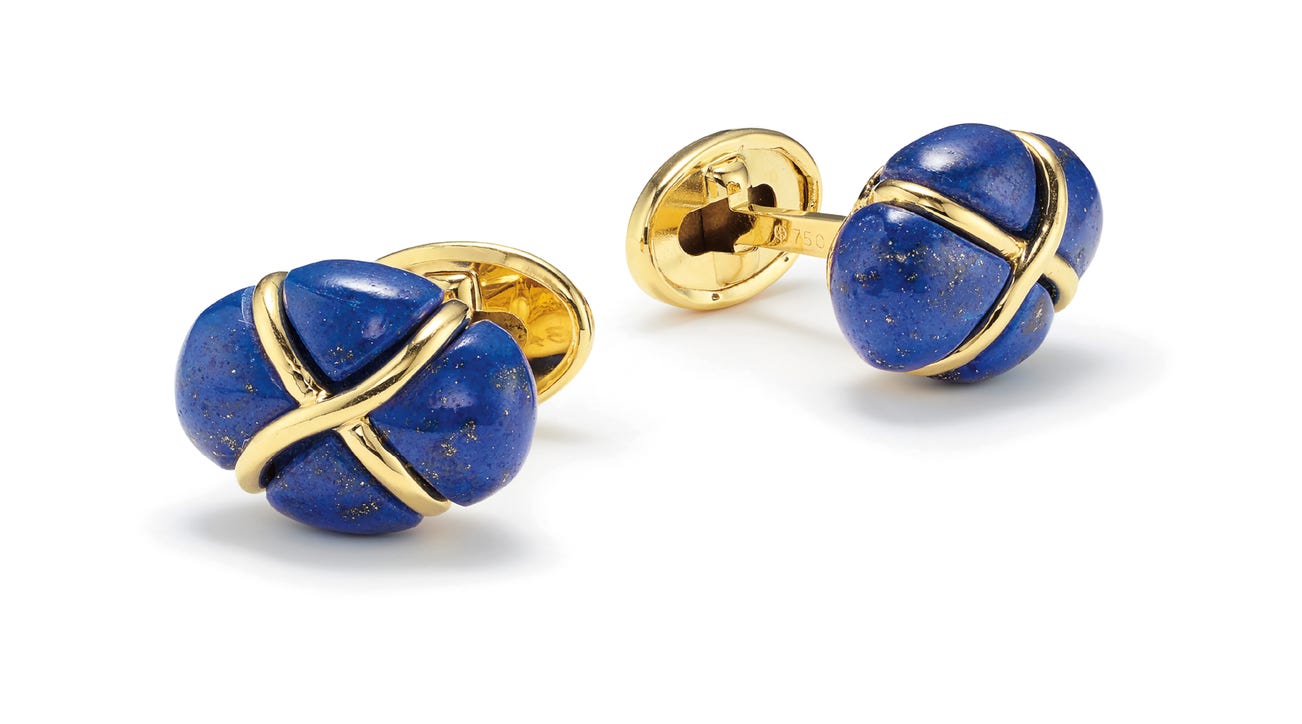 A Pair of Lapis Lazuli and Gold 'Turban' Cufflinks