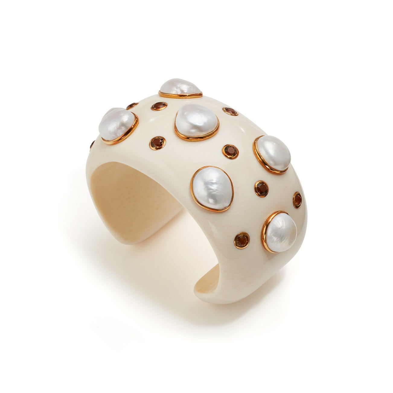 A Mammoth Tusk, Pearl, and Quartz Cuff