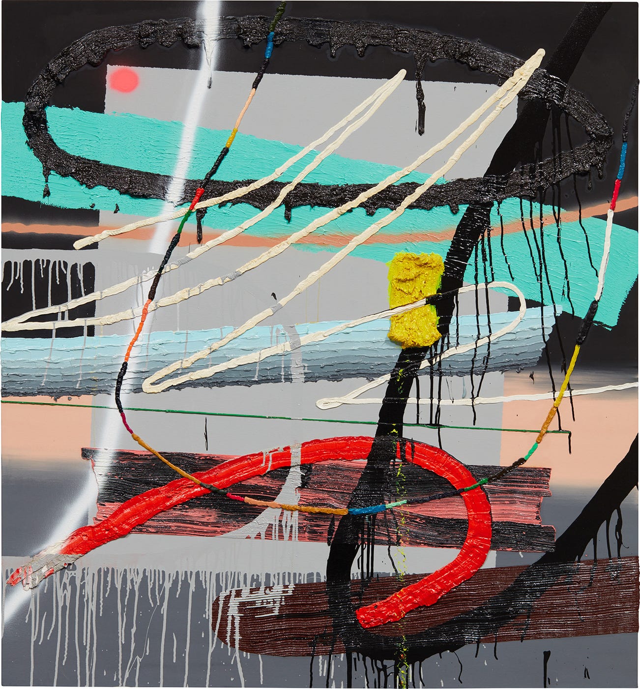 acrylic, enamel, spray paint and oil on canvas