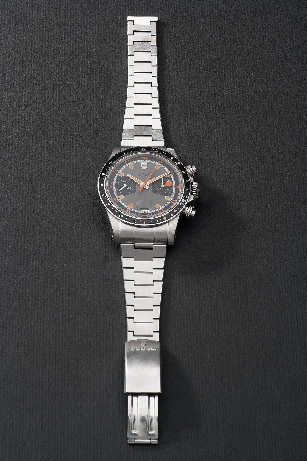The present watch is a wondrous execution of the Tudor Oysterdate Chronograph with 40-mm case, screw down pushers, and the very iconic “Monte Carlo” dial, a nickname given as the dial is reminiscent of the casino chips from the city. The dial configuration of the present watch is also dubbed as a “home-plate’ dial due to the dial design resembling a home plate in baseball games.
