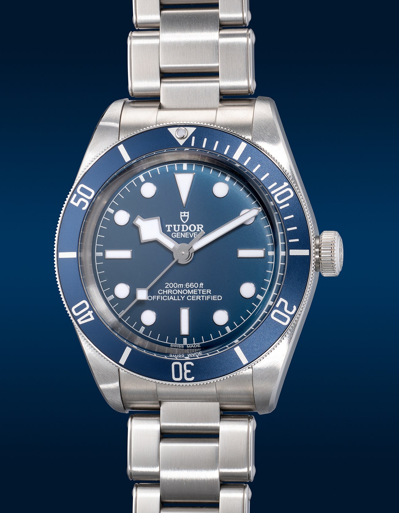 - The sleek matte blue dial and matching anodized aluminium bezel channel a mood of crisp modernity. Like the ice caps of the year that inspired its name, the Black Bay 58 conceals a fiery heart beneath a cool exterior.