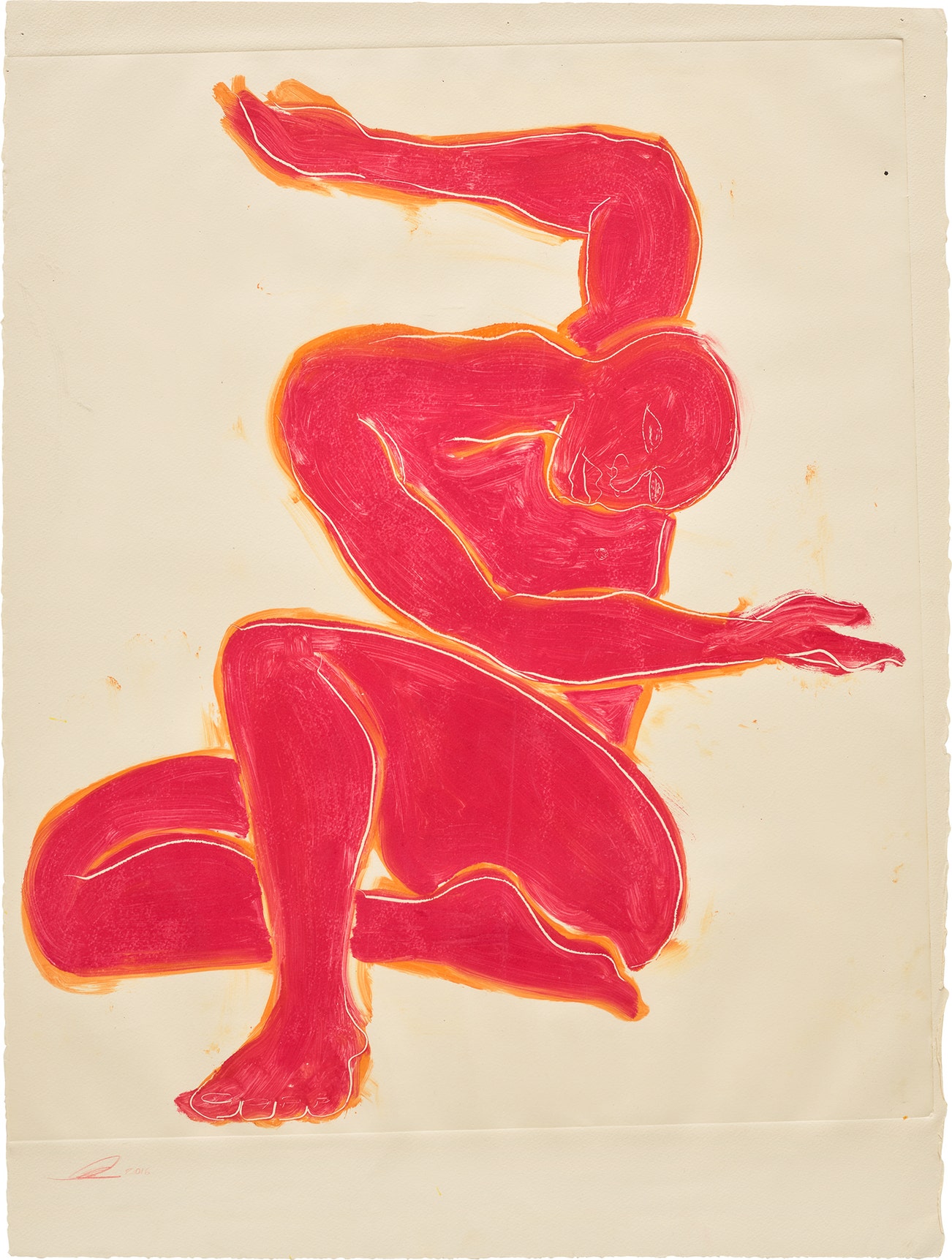 signed and dated 'Tunji Adeniyi-Jones 2016' lower left; signed, titled and dated 'TUNJI ADENIYI-JONES 'RED FIGURE POSING' 2016' on the reverse