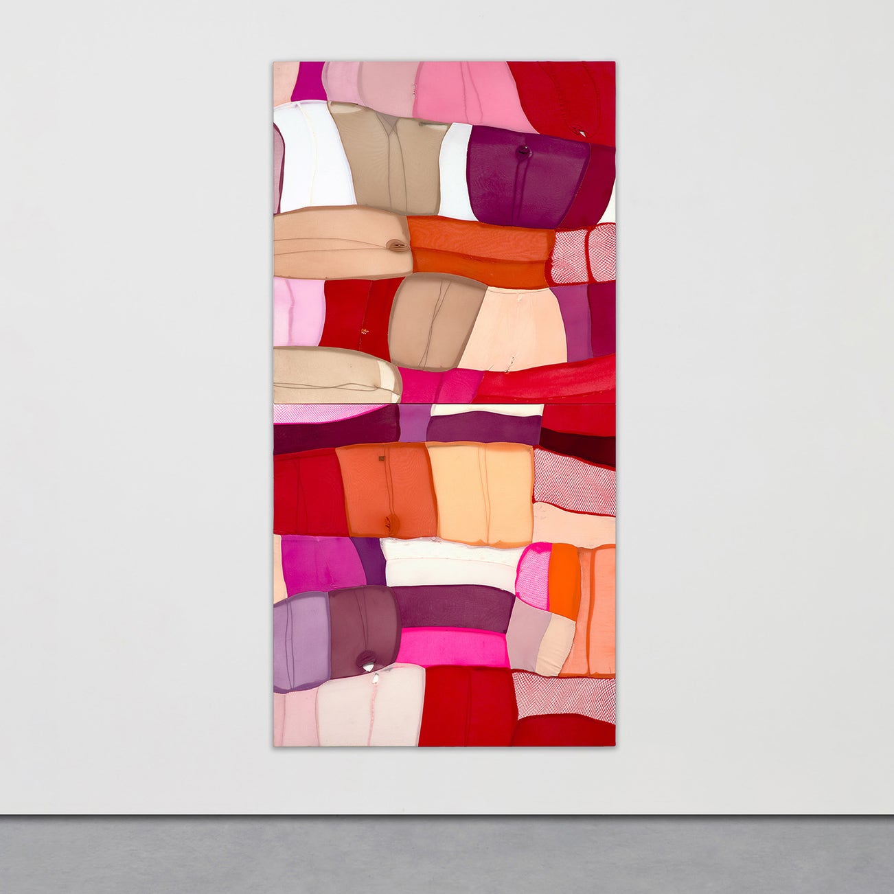 nylon and cotton pantyhose, fishnet stockings, thread and sealant on canvas, in 2 parts