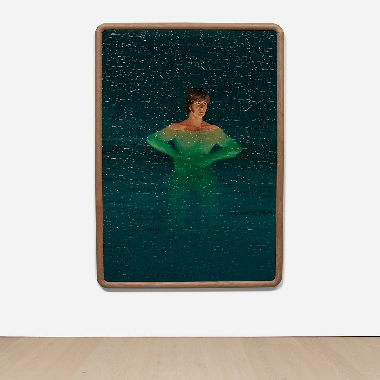 hand-made and hand-painted puzzle, acrylic and milk paint on wood, in artist's frame