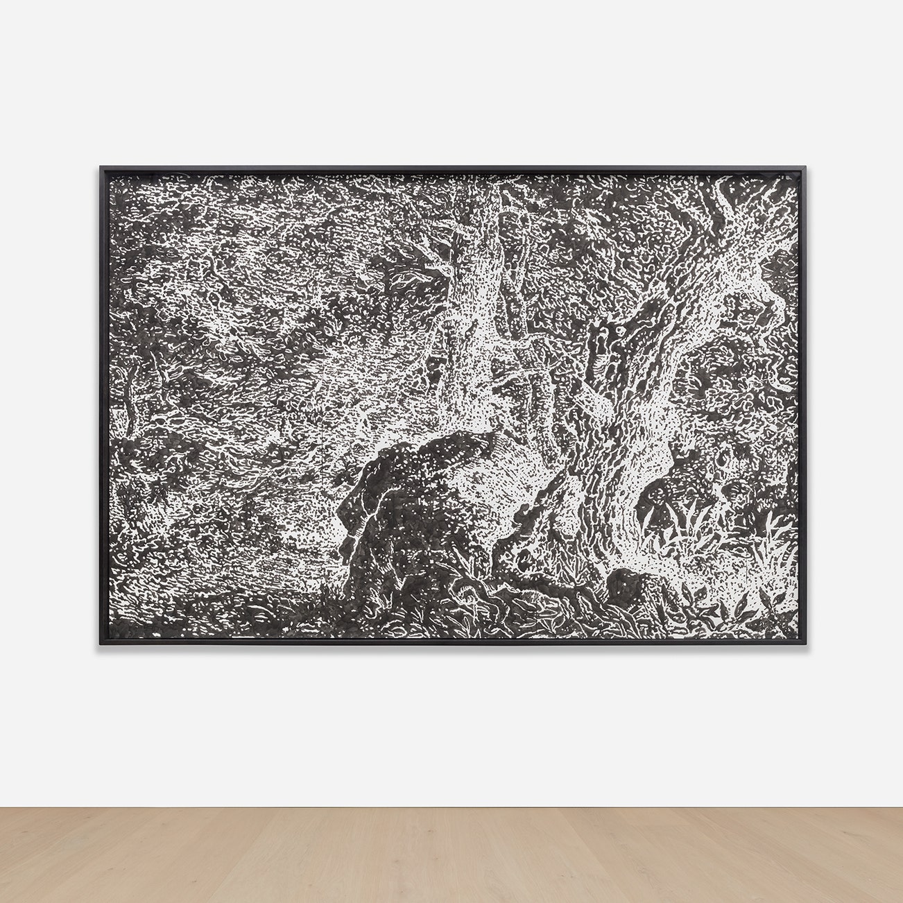 ink on paper, in artist's chosen frame, with silkscreen on Plexiglas plaque