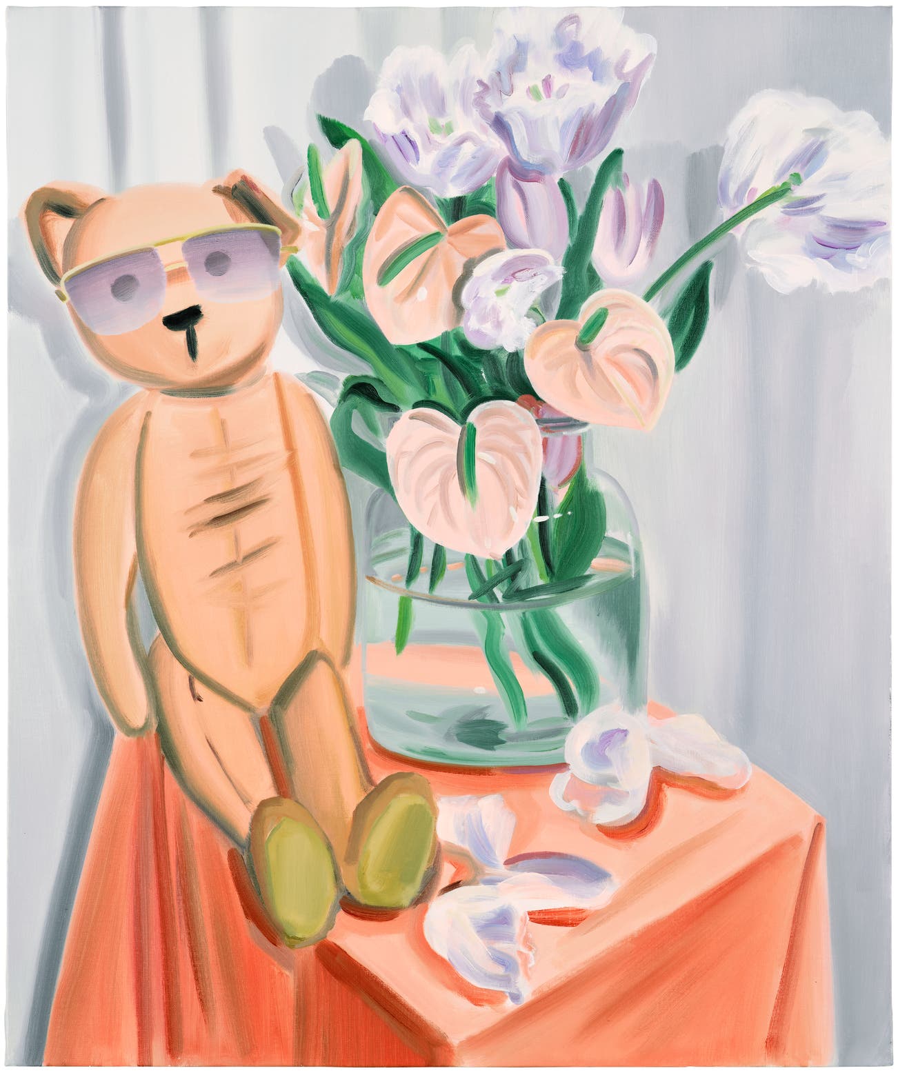 Ulala Imai (b. 1982) was born in Kanagawa, Japan and currently lives and works in Tokyo. Her canvases are typically still life, showing familial life as well as well known imagery from popular culture. Though the objects she paints are personal to her upbringing and her own memories, they are relatable and nostalgic to the viewer as well.