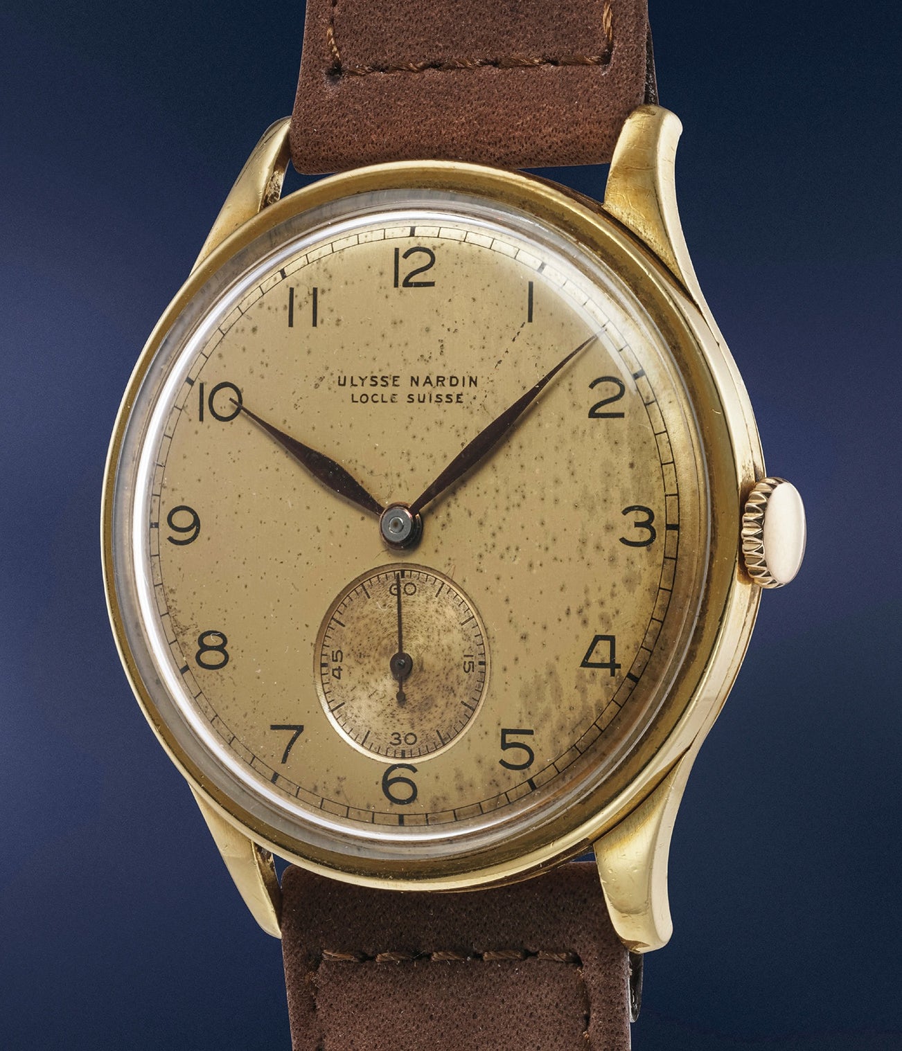 The present timepiece represents a rare value proposition in the field of vintage watches. Impressing the beholder with a large-for-the-time 37mm diameter and a completely unrestored dial sporting a highly unusual and charming mottled champagne patina, this wristwatch is the ideal choice for the enthusiast of vintage timepieces looking for a daily wear piece which exudes vintage charm and at the same time sports a simple, timeless aesthetic as enjoyable by today’s fashion canons as it was 80 years ago.