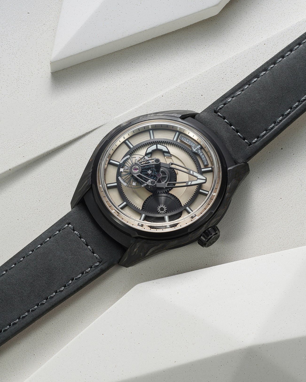 A fine and attractive limited edition carbonium wristwatch with carrousel tourbillon, dual direct escapement, warranty and presentation box, numbered 30 out of a limited edition of 30 pieces made for The Hour Glass