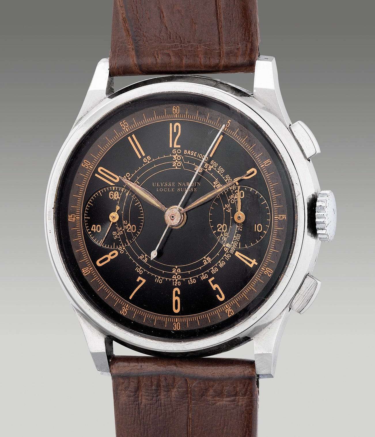 The 1940’s marked an important era for chronograph wristwatches with some examples achieving an iconic status in the world of horology today. Based in Le Locle, Ulysse Nardin was regarded as one of the top manufacturers producing beautiful chronograph timepieces at the time with quality movement finishing and reliability.
