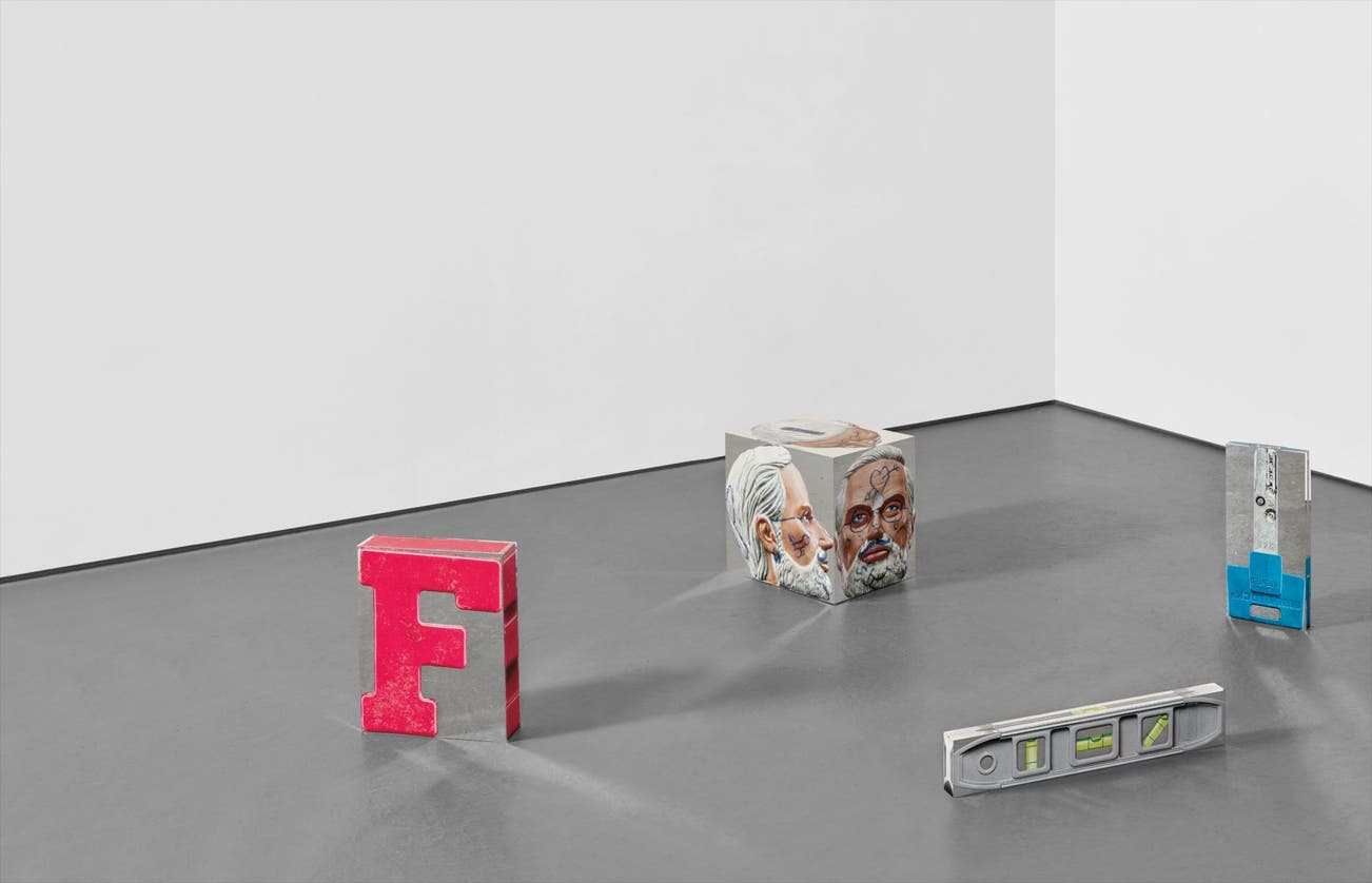 signed "Urs Fischer" on a label affixed to the interior of the "F" element