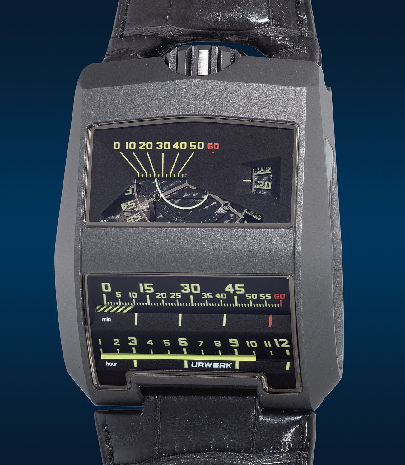 The concept of representing time in a circular manner has been prevalent since the invention of the chronometer. However, Urwerk challenges this traditional notion by presenting time in a linear fashion, inspired by the idea of drawing a straight timeline on a black page to mark "Past, Present, and Future". This unique perspective stems from the fact that creating a movement that continuously rotates is much easier than developing one that follows a straight line and returns to zero. Prior to the launch of Urwerk's collection, no one had successfully created a wristwatch with true retrograde linear displays.