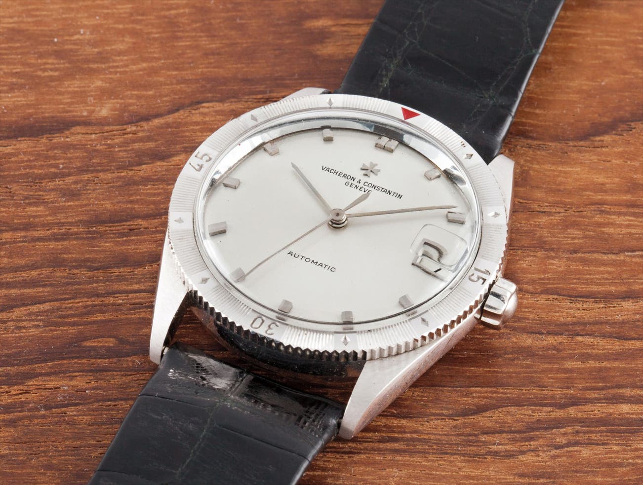 Reference 6782 is an exceedingly rare reference and it is believed that there exist only two examples in white gold anywhere in the world. Vacheron Constantin’s interpretation of the “Thunderbird” offered here for sale is in exquisite condition still retaining all of its original factory finishes. The circular screw down case is unpolished, the lugs are beautifully displaying original finishes and clear defined lines. The silver “Star Burst” dial is clean and in all original condition and the bezel is very crisp, still retaining the red enamel triangle at 12 o’clock. This Vacheron Constantin “Turn-O-Graph” ticks every box for the demanding collector.