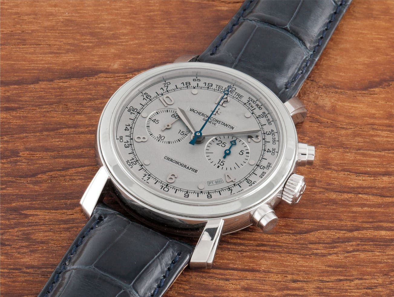 A rare and oversized platinum chronograph wristwatch, No. 1