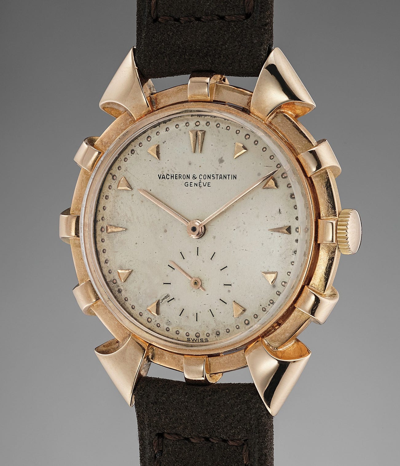 The present watch is presented in very attractive condition. Its pink gold case retains strong proportion and the patina on the dial attests the love this watch has already received from its original owner. Because of its condition and distinctive design, we can confidently say this timepiece would move any collector who chances upon it.