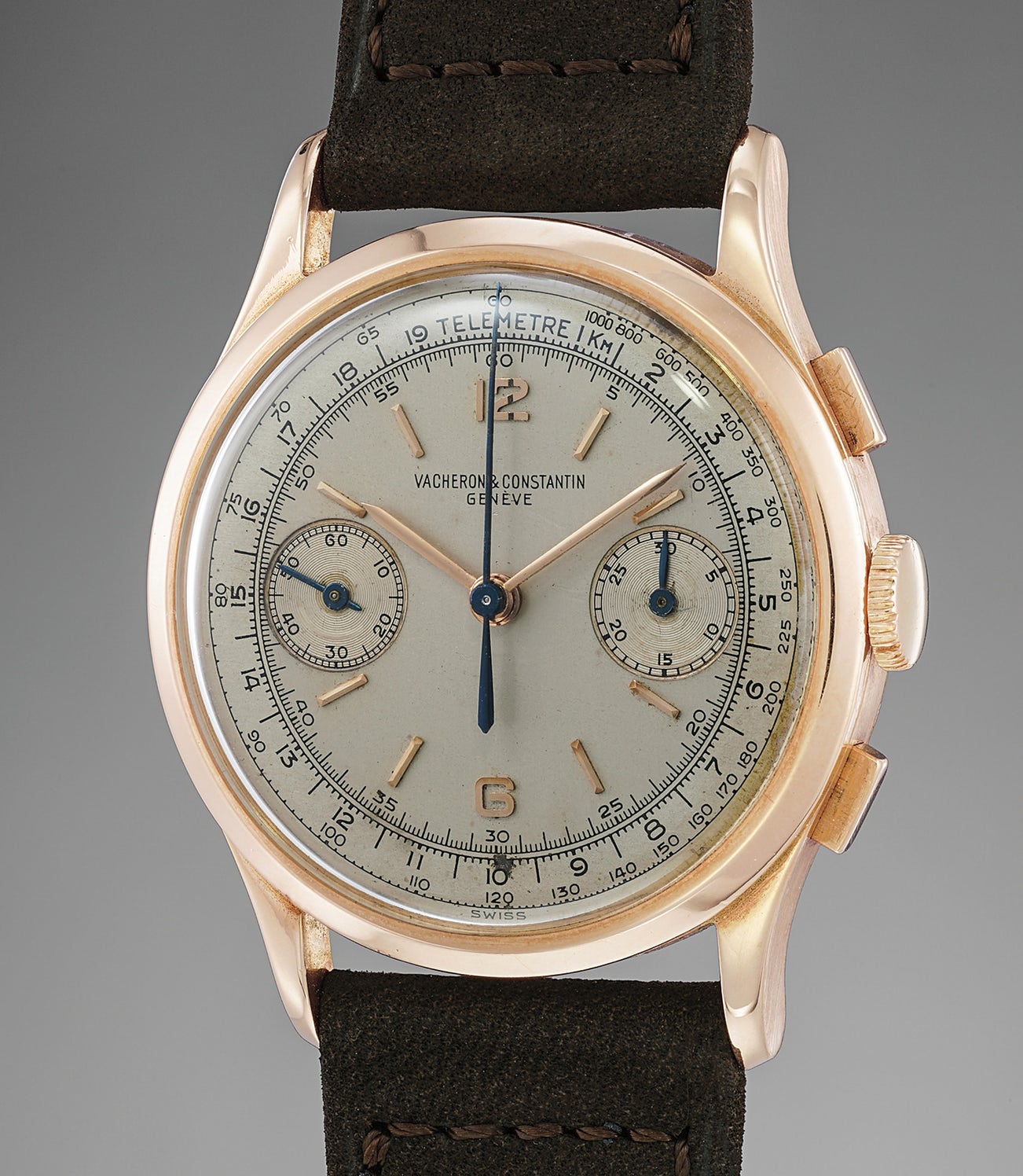 A rare, attractive and well-preserved pink gold chronograph wristwatch