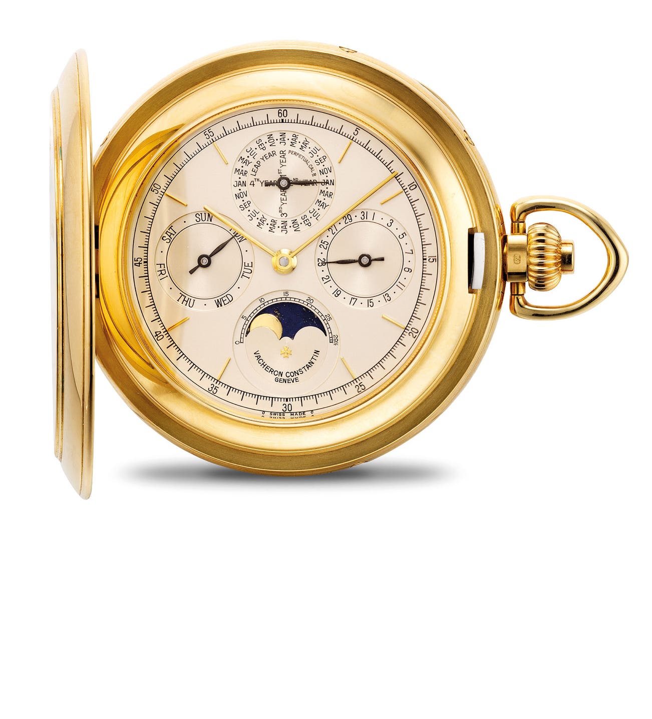 A rare and very attractive gold perpetual calendar hunter case pocket watch with moon phases