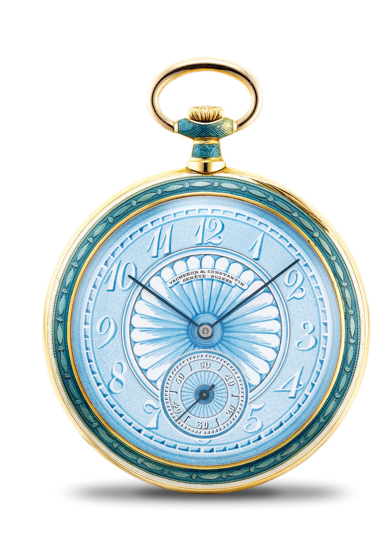 An extremely fine, rare and striking savonette openface pocket watch with painted ceramic dial and flinqué enamel case