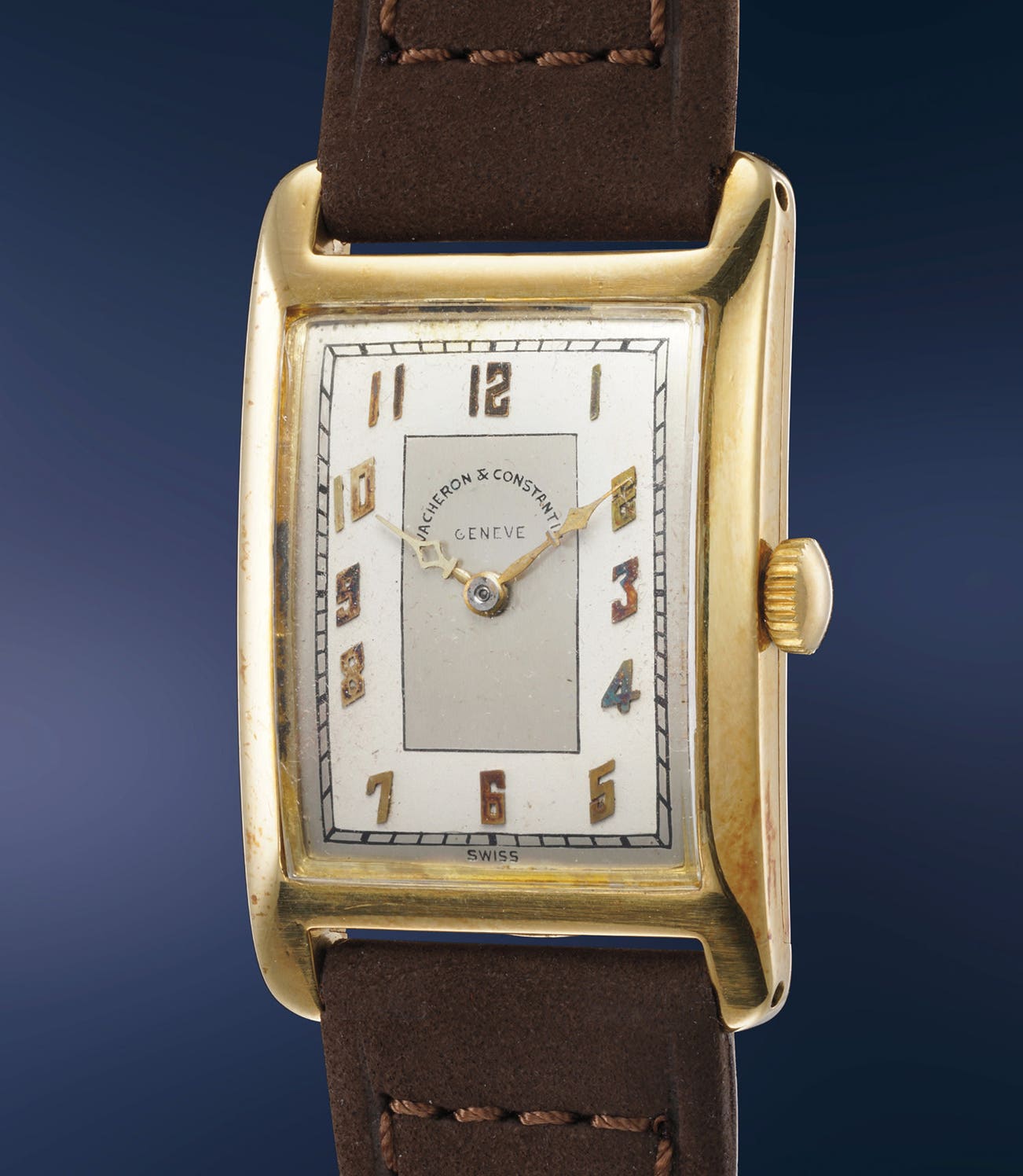 Preserved in excellent condition, this charming rectangular wristwatch exudes art deco flair. With a two-tone dial, the watch also displays Arabic numerals that are designed with a deco style along with the old Vacheron Constantin signature. Even the caseback has a scroll design which is charming. Most interestingly, there is a dedication on the caseback which says "Gladys B Baxter to John Baxter Chicago Dec 6 1929".