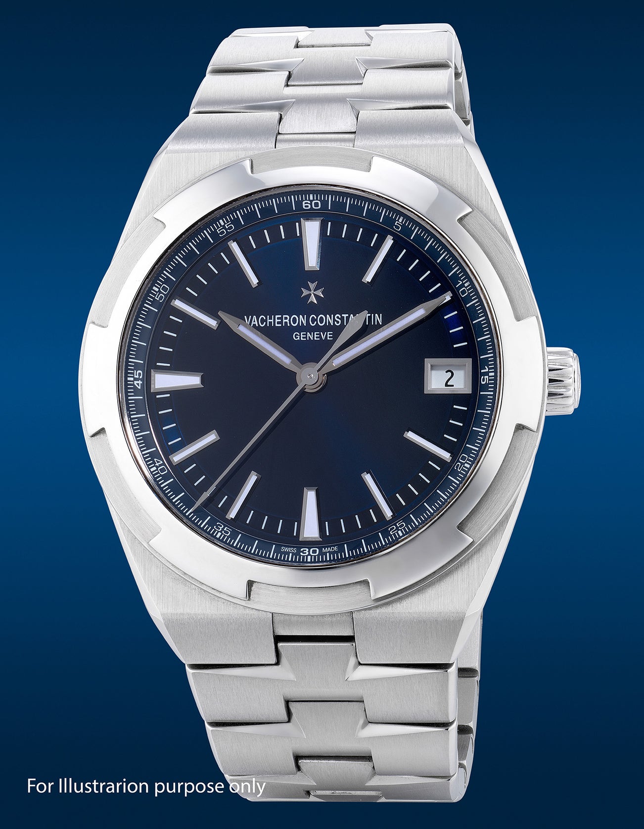 An attractive, “like-new” and unworn stainless steel wristwatch with center seconds, date, bracelet, warranty and presentation box, made exclusively for Vacheron Constantin Boutique
