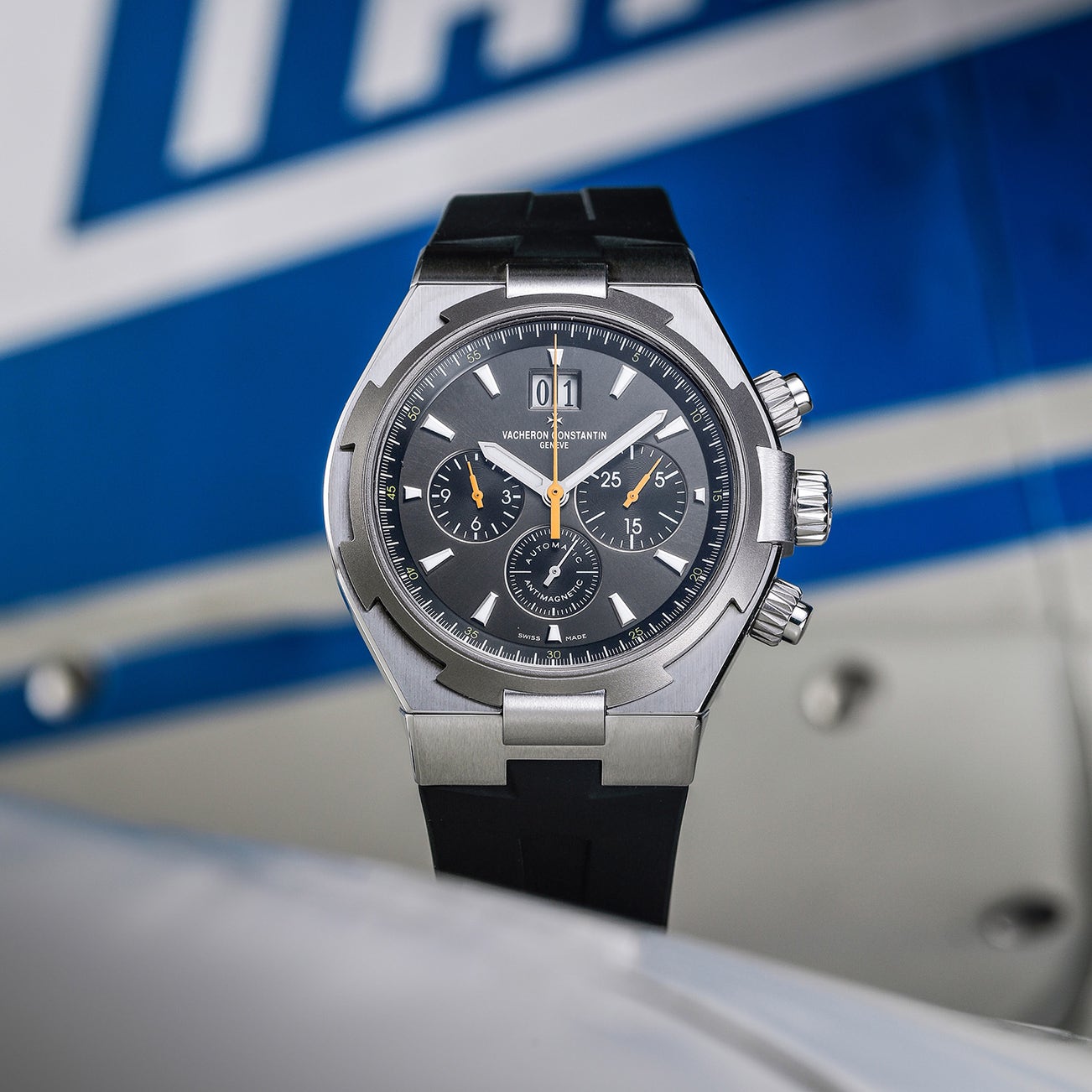- The present second generation Overseas features a stainless steel case with an engraved caseback and a sandblasted titanium bezel. Striking mustard hands beautifully contrast against the anthracite dial. This combination not only exudes a sporty appeal, but it also enhances the legibility of the dial.