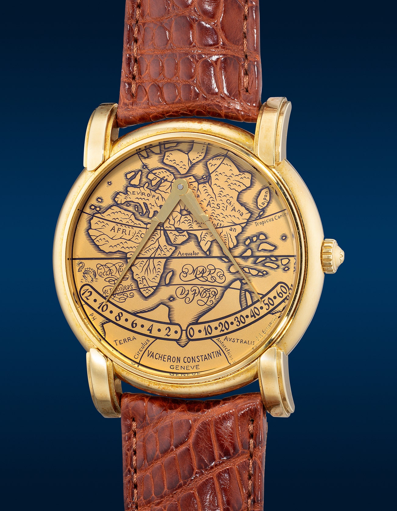 - This particular 1995 "Mercator" example has a 22K yellow gold dial entirely hand-chased and enameled, depicting the outlines of Mercator's famous 1587 world map. Preserved in exceptional condition and directly from its original owner, this timepiece represents a rare opportunity to acquire a mechanical wonder that captures both the artistry and history of the Renaissance era.