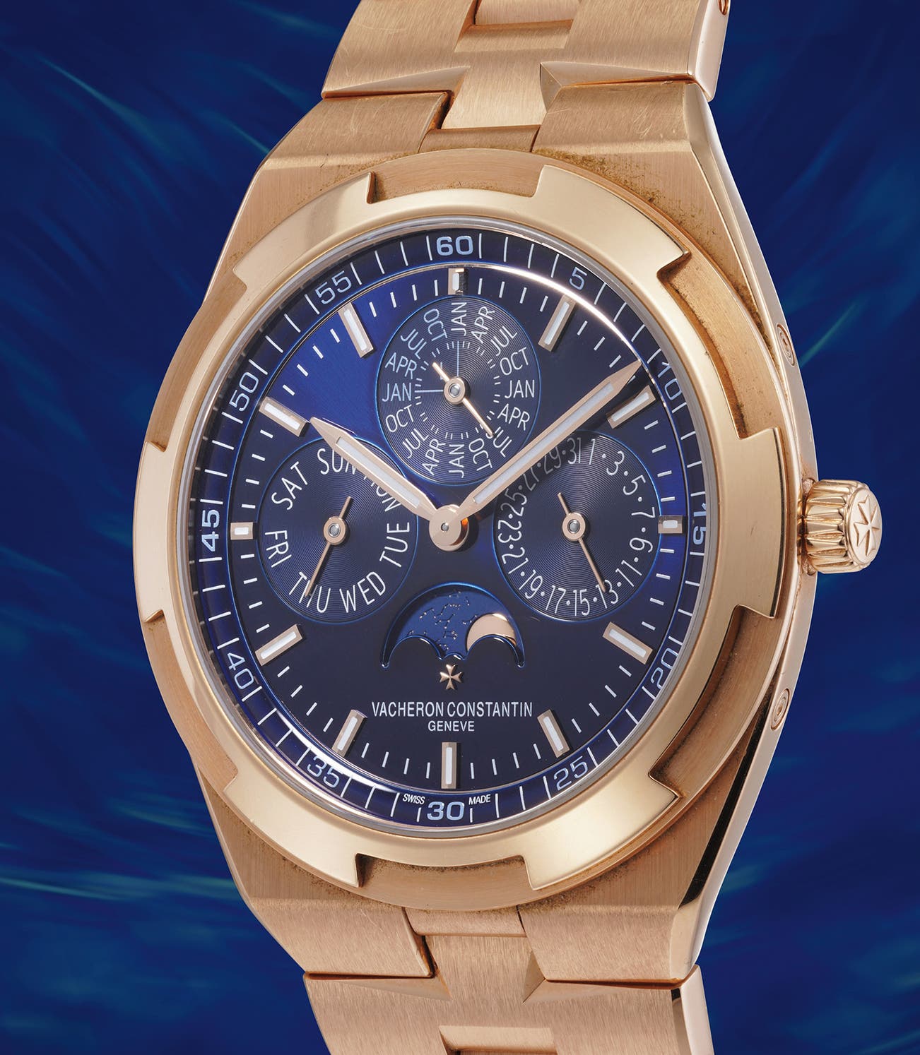 In excellent condition and accompanied with its full set of accessories, the present Overseas perpetual calendar ultra slim in pink gold is a must have for the collector looking for a high quality complicated casual chic timepiece.