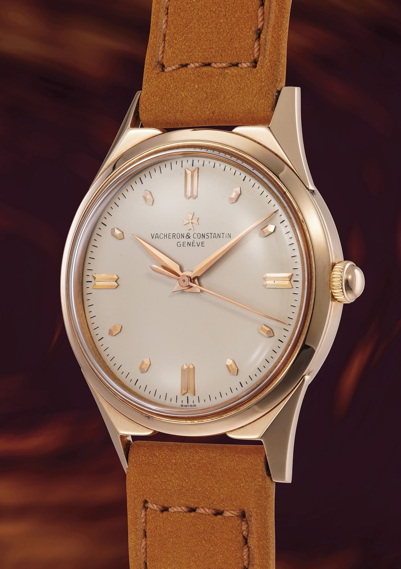 Offered without reserve, it is accompanied by many of its original accessories, such as the Vacheron & Constantin Certificate of Origin from 1957, Chronomètre Royal Bulletin de Marche and additional certificate of origin, adding another layer of collectibility.