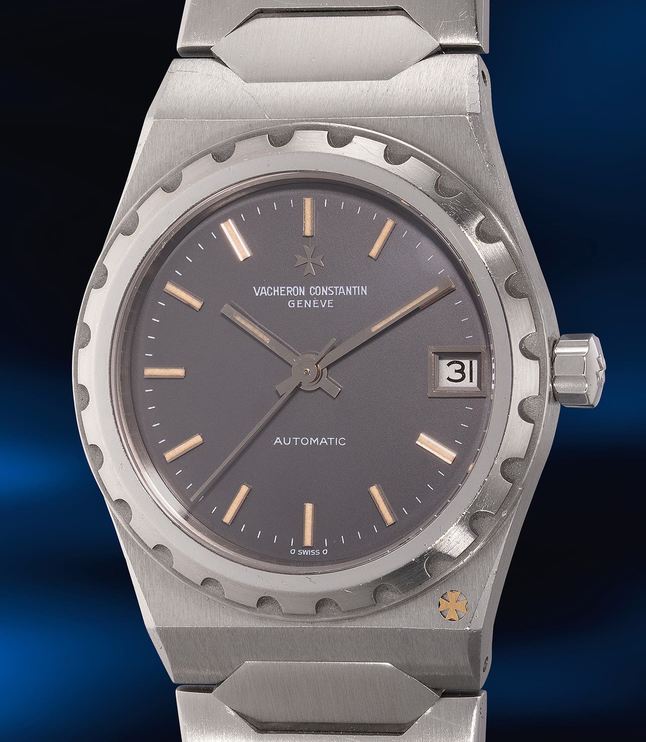 Unlike the “Jumbo” version of the Vacheron 222, powered by the ultra-slim cal. 1121, this “mid-size” version is driven by the cal. 1124, based on the Jaeger-LeCoultre 889. Produced 1987, it is from the last batches of this model before it ceased production in the following year and according to Vacheron Constantin, only 343 examples were made in steel for this reference.
