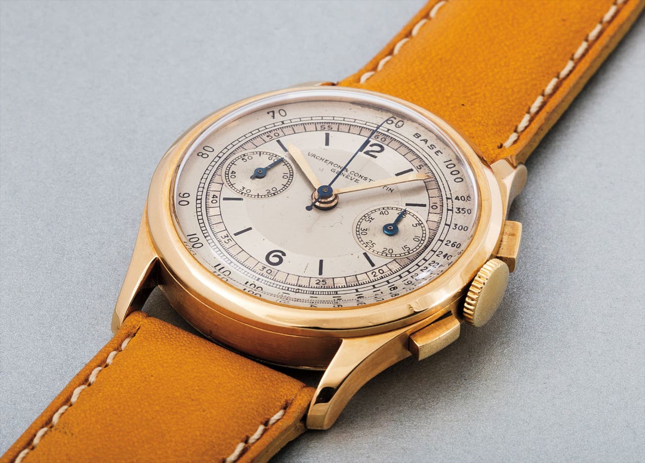 It is rare to find a gold chronograph of such refined design and such unrestored, but excellent condition by any maker from the early 1940's. This reference 4072 by Vacheron Constantin is a particularly rare gem.
