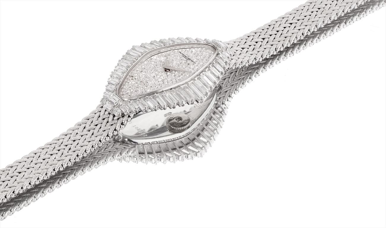 A lady's fine and rare white gold and diamond-set lozenge-shaped bracelet watch